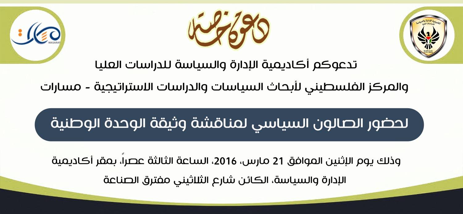 دعوة لحضور الصالون السياسي لمناقشة وثيقة الوحدة الوطنية